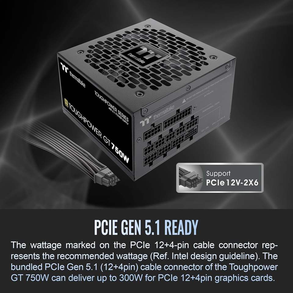 Thermaltake Toughpower GT 750W แหล่งจ่ายไฟ3.1 ATX 80 PLUS ประสิทธิภาพทอง Smart-Zero-Fan Native 300W ตัวเชื่อมต่อ5.1 PCIE