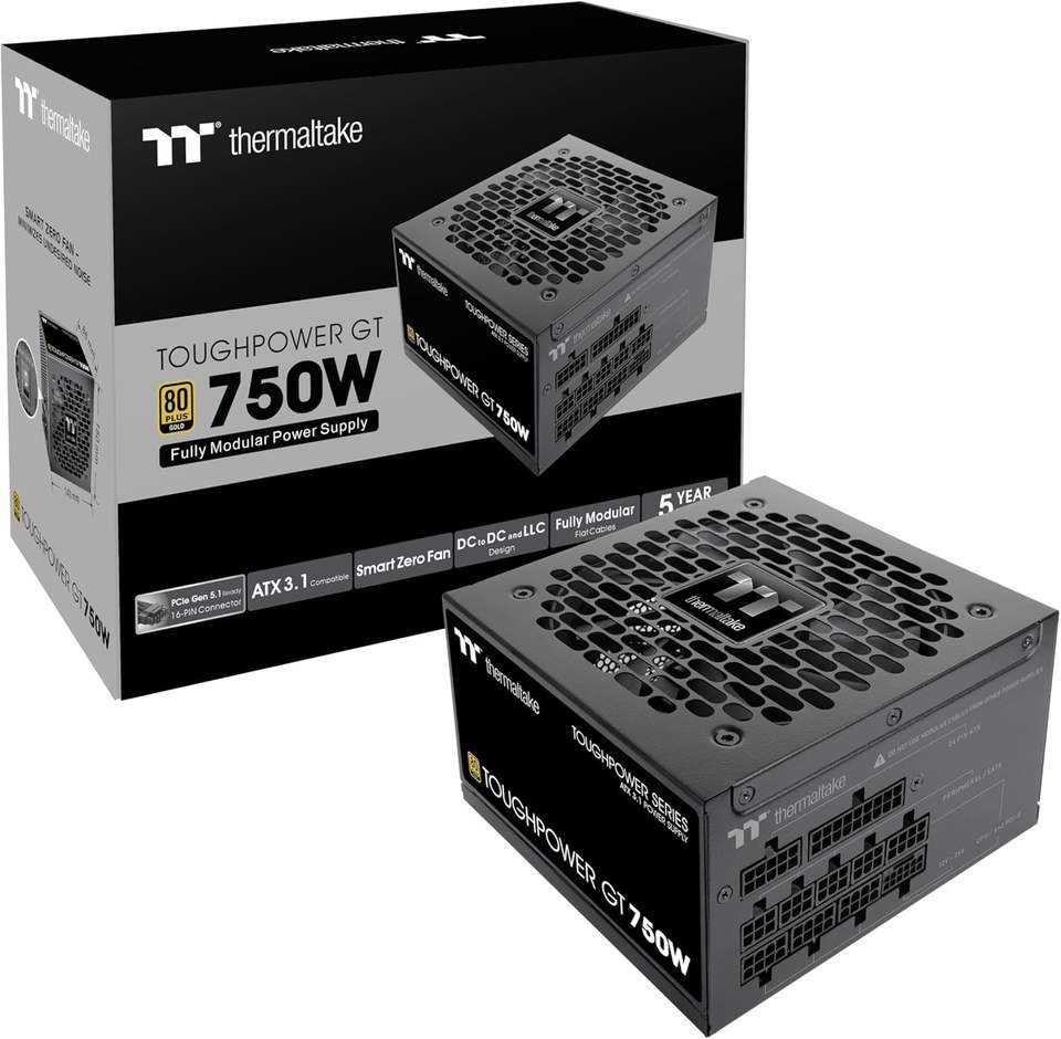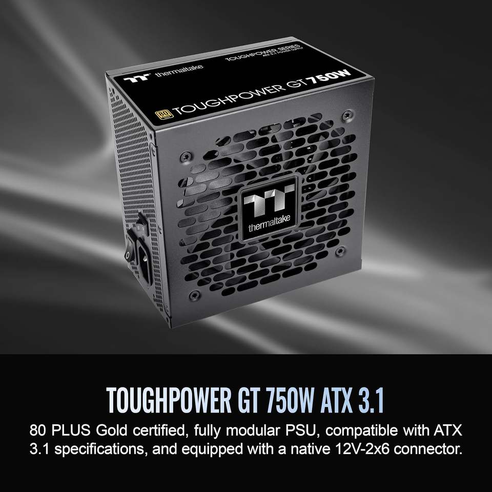 Thermaltake Toughpower GT 750W แหล่งจ่ายไฟ3.1 ATX; 80 + ประสิทธิภาพทอง; พัดลมศูนย์อัจฉริยะ; ตัวเชื่อมต่อ PCIe5.1 300W แบบดั้งเดิม; 5ปี
