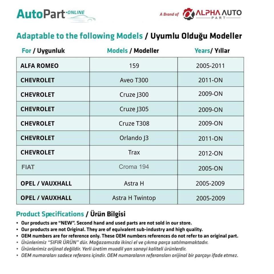 ชื่อแบรนด์:Opel Compatible Spare Parts
