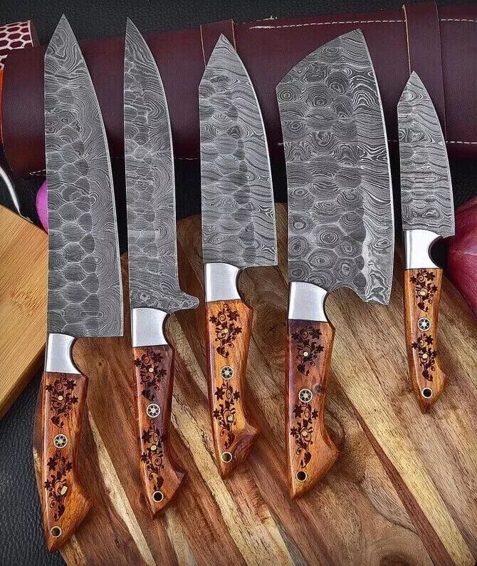 ชุดมีดทำครัวเหล็กดามัสกัสทำมือจาก Thewizcrafts จำนวน 5 ชิ้น ด้ามจับใช้งานได้ทั้งสองมือ ปลอดภัยสำหรับเครื่องล้างจาน มีดคุณภาพสูง