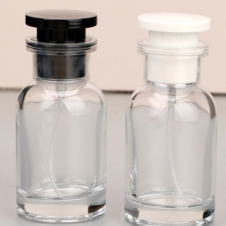 ขวดน้ำหอมแก้วใสก้นหนาพร้อมโลโก้สั่งทำ ขนาด 30 มล./50 มล./100 มล. หัวฉีดน้ำหอมสำหรับเครื่องสำอาง