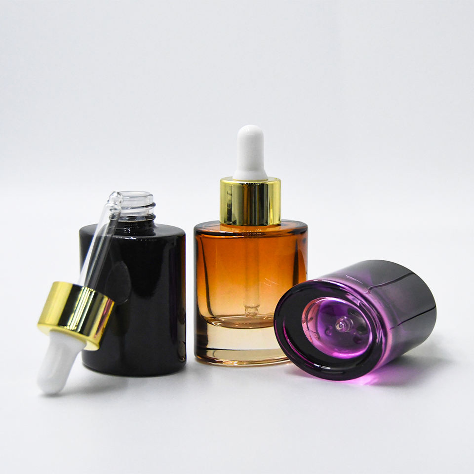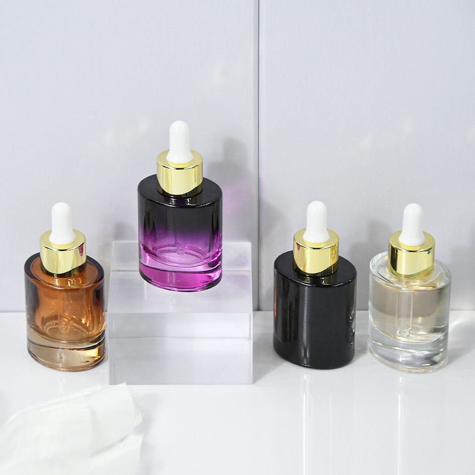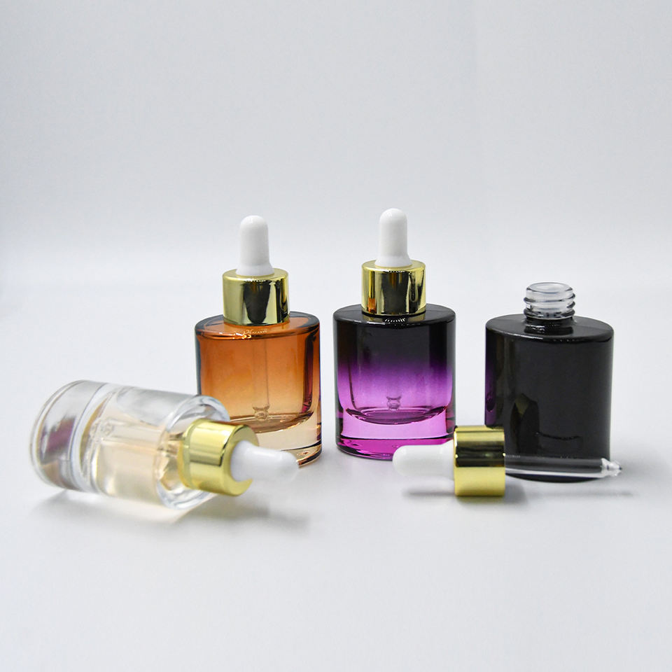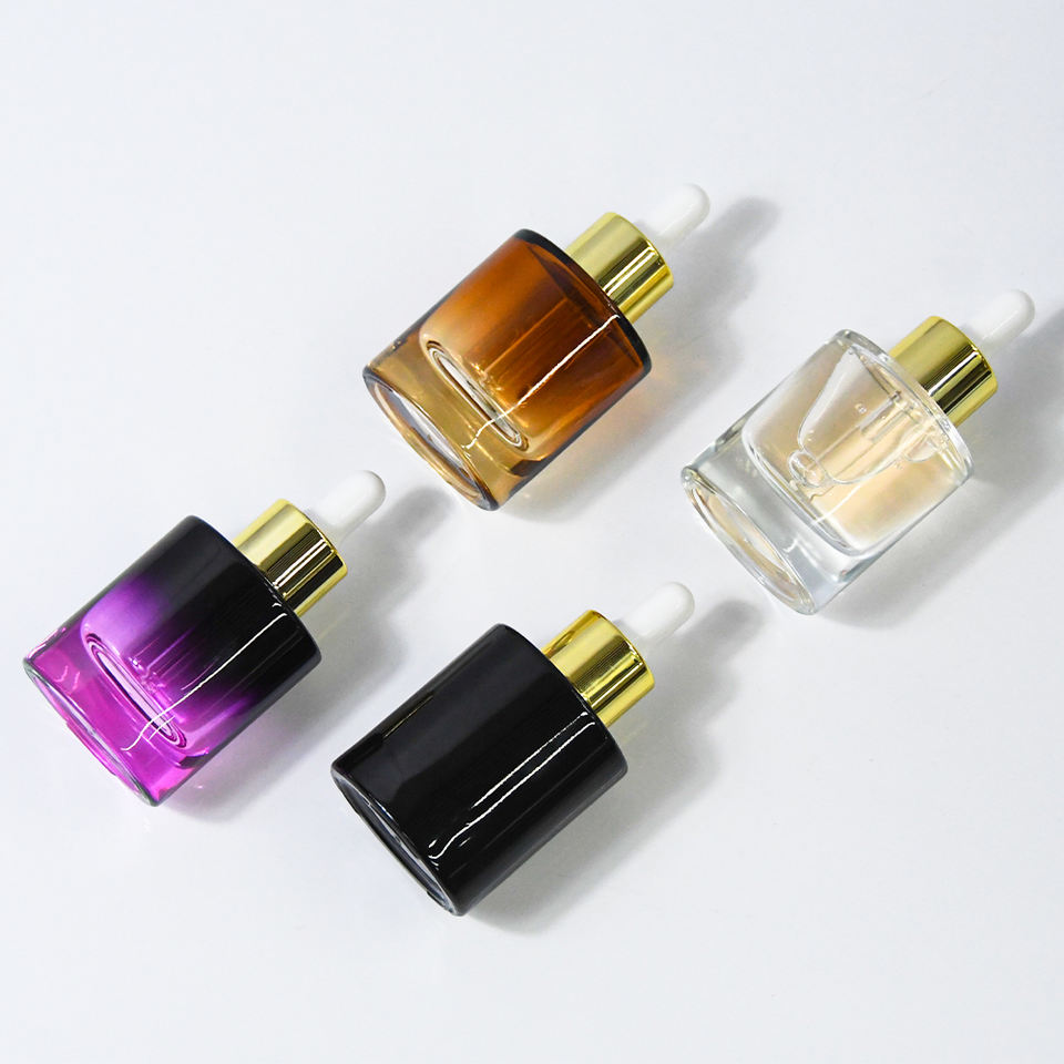 ขวดหยดแก้วสะพายไหล่แบบแบนสีอำพันหนา30มล. สำหรับใบหน้าน้ำมันหอมระเหย
