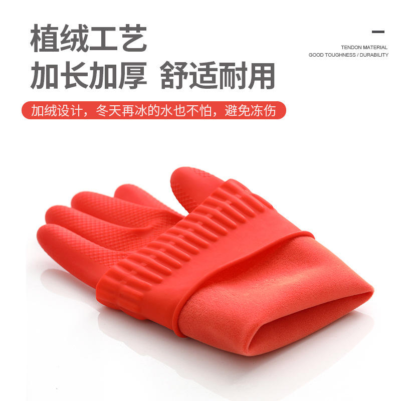 ถุงมือยางลาเท็กซ์หนา 38-45 ซม. กันน้ำ สำหรับทำความสะอาดห้องครัว ใช้ในครัวเรือน สีพื้น ถุงมือยาว