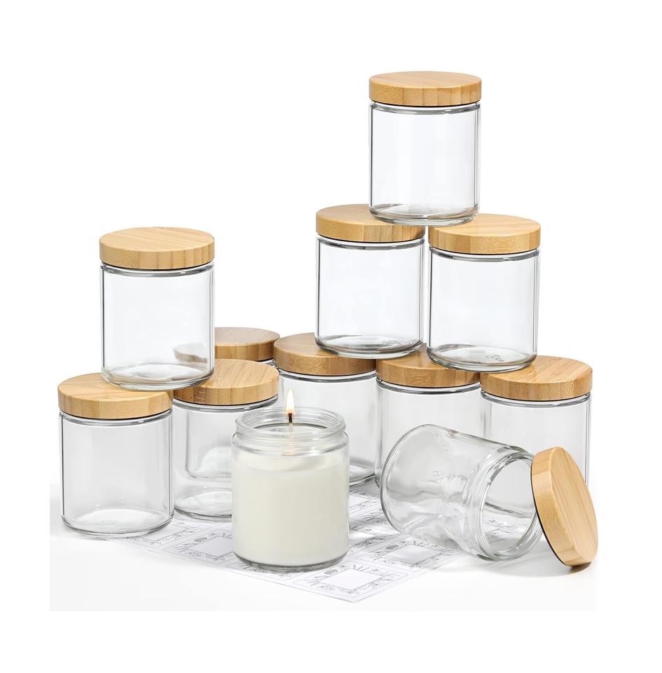Thick Glass Candle Jars Bamboo Lids 8 OZ Bulk Clear Round Glass for Making Candles Empty Food Storage Containers