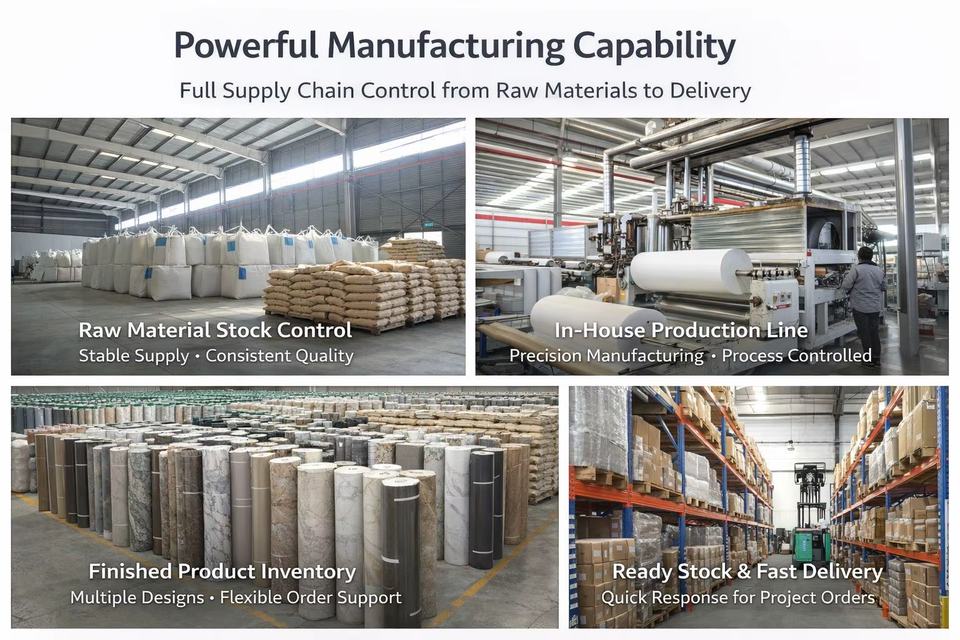 คุณสมบัติที่สำคัญ:กันน้ำและกันความชื้น| ทำความสะอาดง่าย| ตัดได้| ยืดหยุ่น