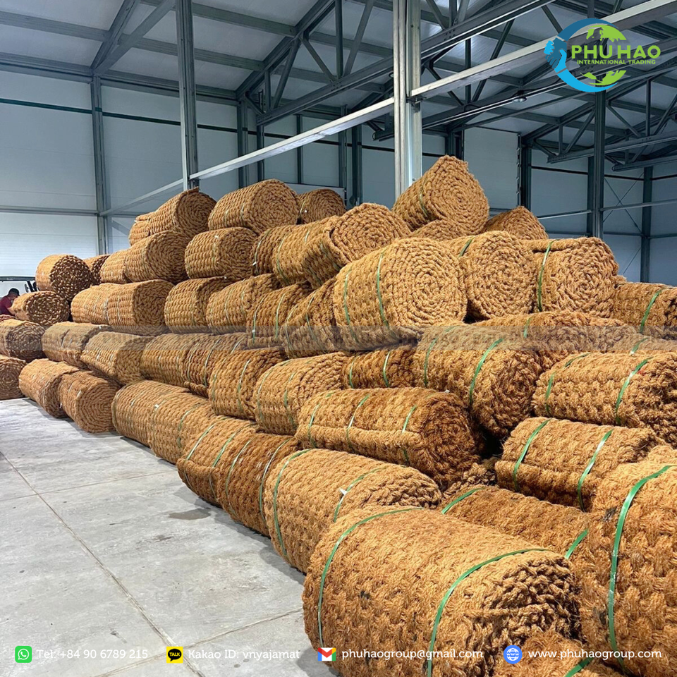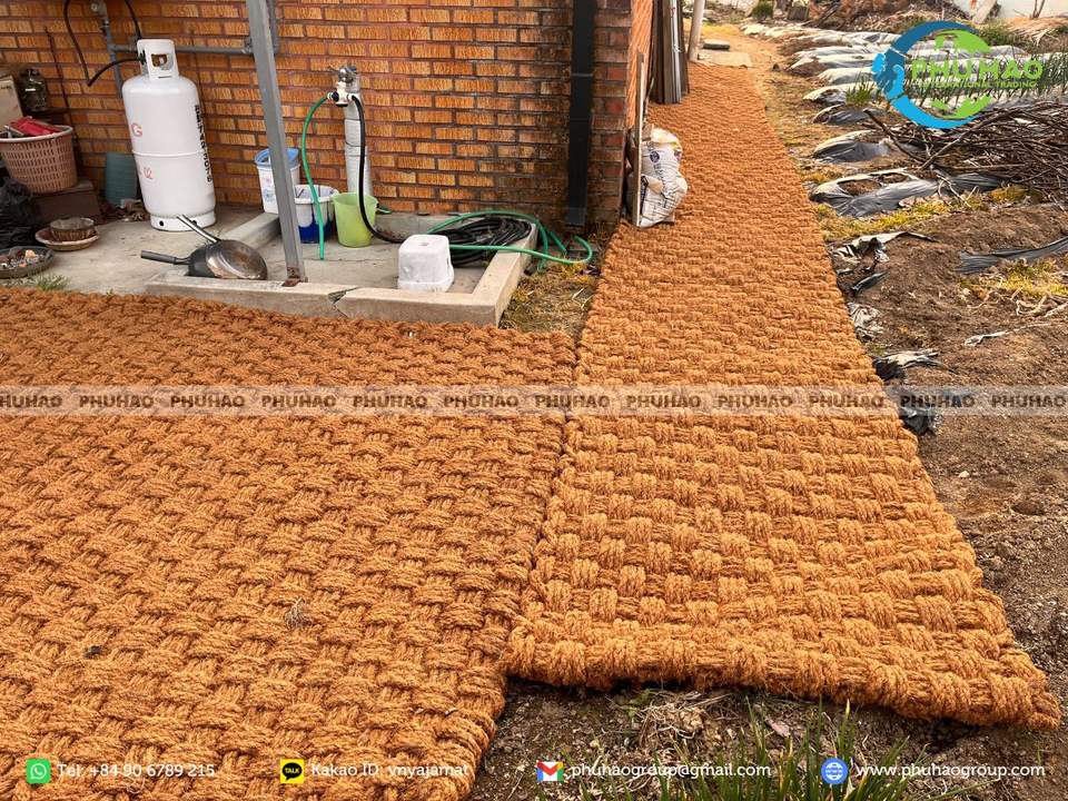 แผ่นใยมะพร้าวธรรมชาติหนา สำหรับใช้บนพื้นที่ลาดชัน และช่วยให้พื้นผิวมีความมั่นคงสูงสำหรับการปลูกพืชและดิน