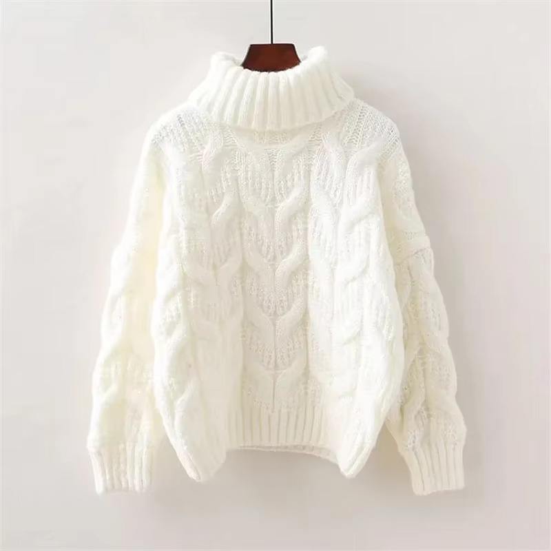เสื้อสเวตเตอร์คอเต่าหนาสำหรับผู้หญิง, เสื้อกันหนาวแบบสวมหัวทรงหลวมสไตล์เกาหลีสำหรับฤดูหนาว2025ใหม่เสื้อถักโลโก้ด้านหน้าป้องกันการเกิดขน