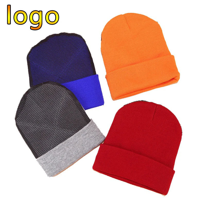 หมวกหัวกะโหลกผ้าแจ็คการ์ดหนาสำหรับสตรีทแวร์หมวกมีโลโก้แบบถัก