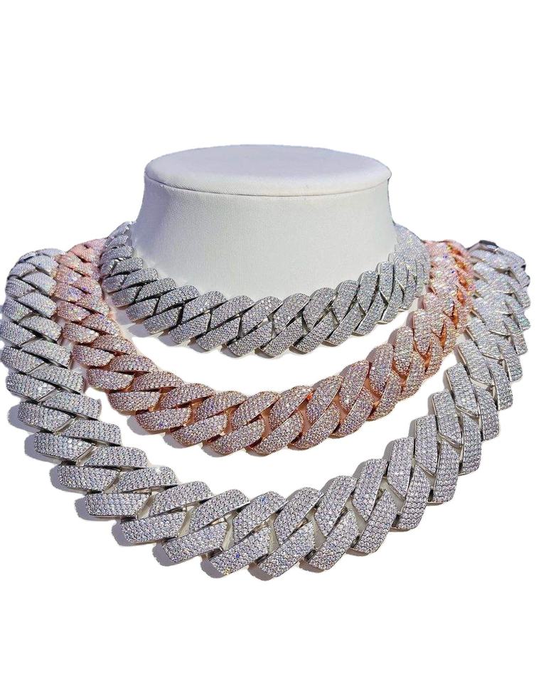 สร้อยคิวบาลิงค์หนา 4 แถว ประดับเพชรโมอิสซาไนต์ หนา 24 มม. สไตล์ฮิปฮอป