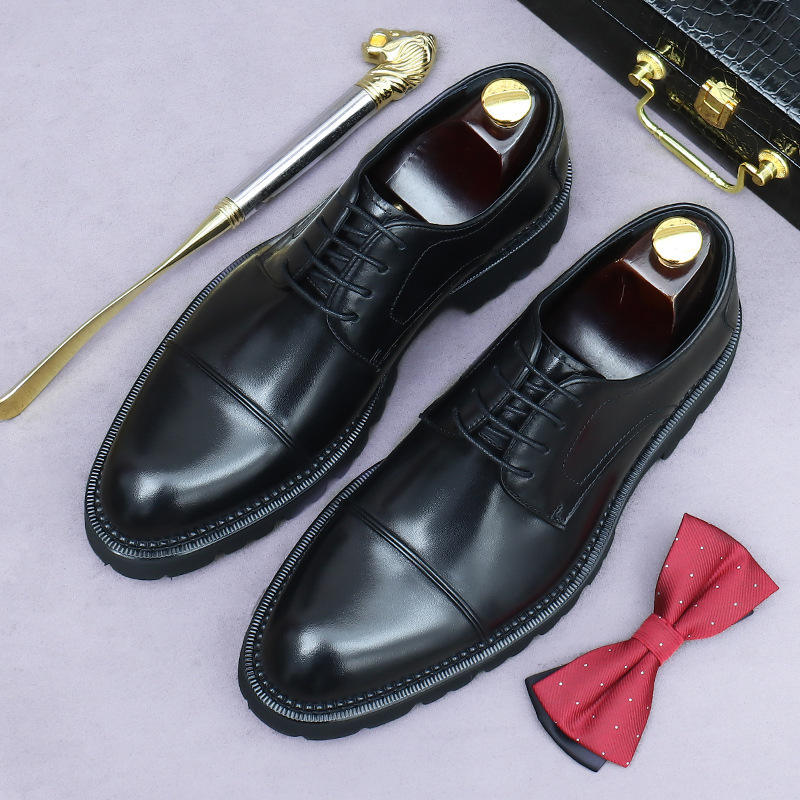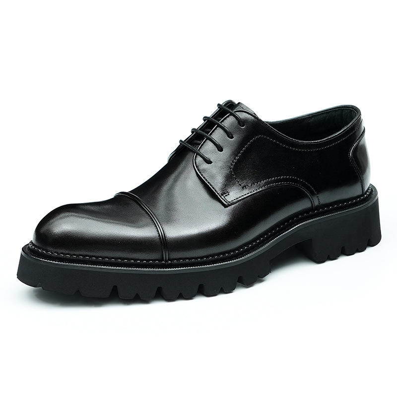 รองเท้าผู้ชายพื้นหนาแบบผูกเชือก น้ำหนักเบา กันลื่น ระบายอากาศได้ดี ดีไซน์แบบต่อผ้า เหมาะสำหรับใส่ทำงานหรือโอกาสทางการ ช่วยเพิ่มความสูง
