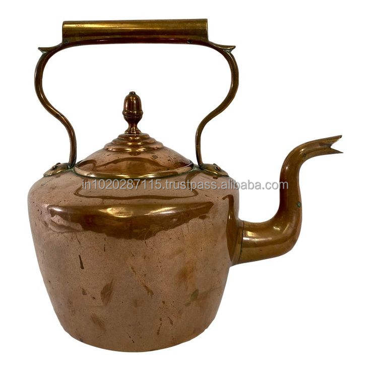 กาต้มน้ำทองแดงหนาพร้อมฝาแบบเคลือบเงาด้วยมือเหมาะสำหรับนักสะสมและตกแต่งแบบชนบท