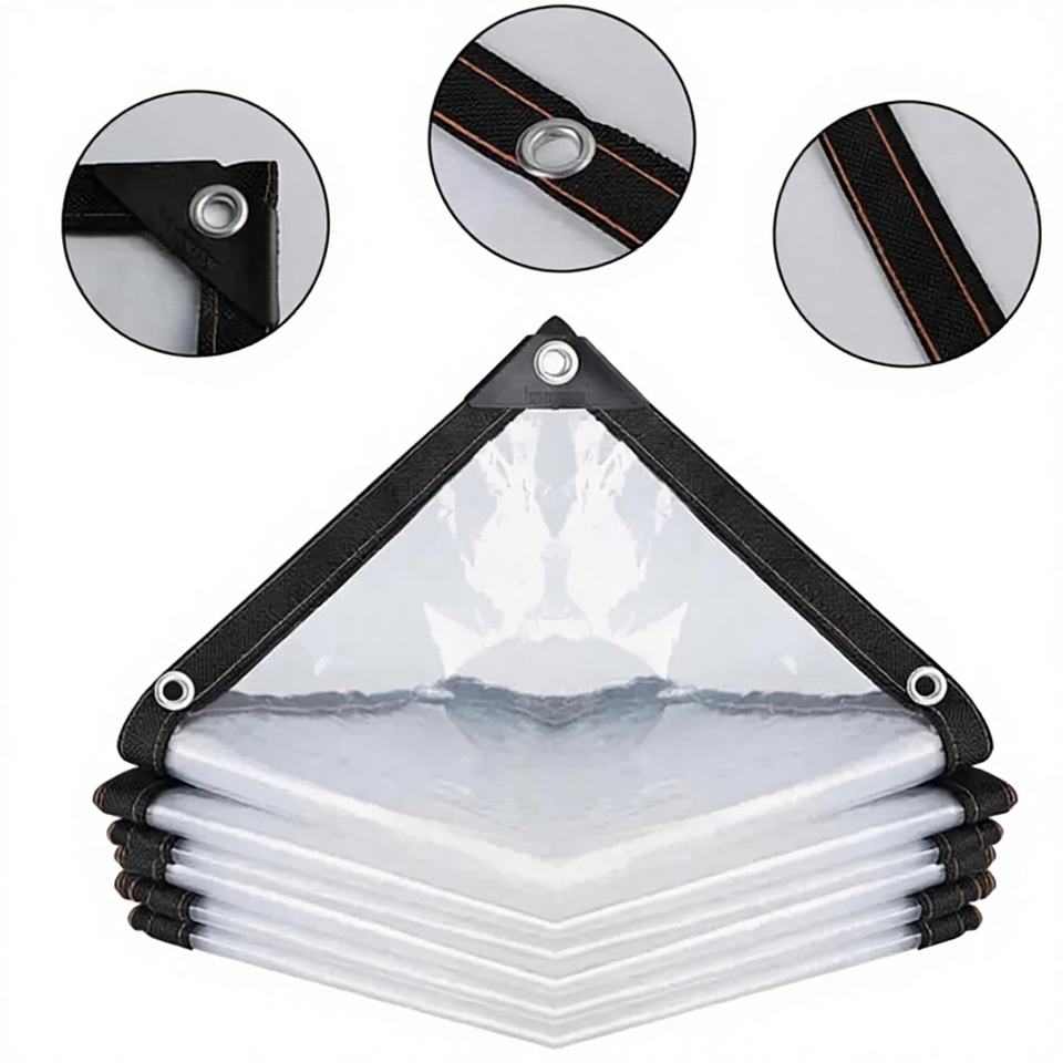 ผ้าใบโพลีเอสเตอร์เคลือบกันน้ำแบบใสหนาพิเศษ สำหรับคลุมสวน กันฝน ป้องกันรังสียูวี 1000D ผ้าคลุมโรงเรือนแบบฉนวนกันความร้อน