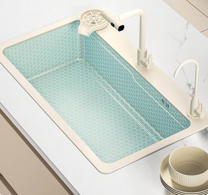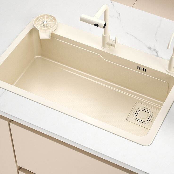 อ่างล้างจานครัวสเตนเลส 304 หนาพิเศษ แบบอ่างเดี่ยวขนาดใหญ่ สีครีม ทำความสะอาดง่าย สำหรับใช้ในครัวเรือน