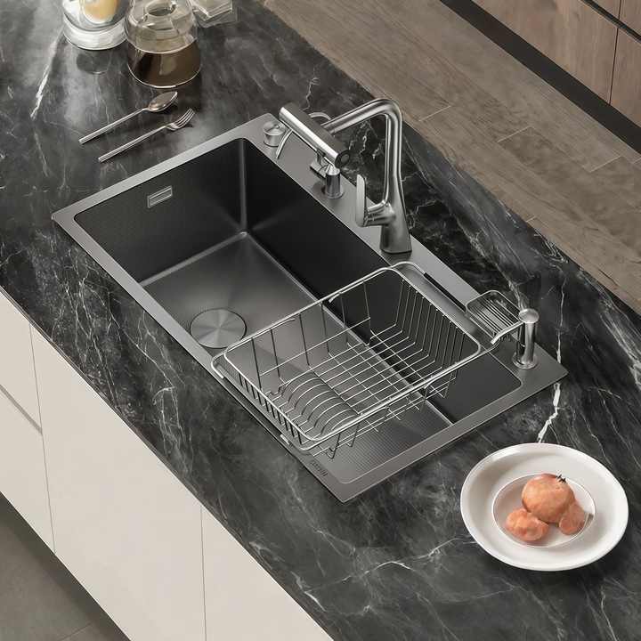 อ่างล้างจานสเตนเลส 304 หนาพิเศษ แบบนาโน ช่องเดียว ติดตั้งใต้เคาน์เตอร์ ท่อระบายน้ำด้านซ้าย สำหรับล้างผัก