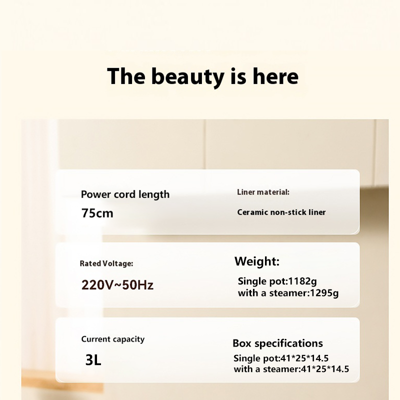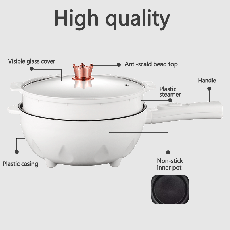 หม้อไฟฟ้าอเนกประสงค์แบบไม่ติดกระทะ ขนาด 3 ลิตร พร้อมฟังก์ชั่นนึ่ง ควบคุมอุณหภูมิได้ เหมาะสำหรับใช้ในบ้าน นอกบ้าน และโรงแรม