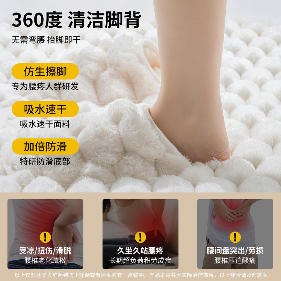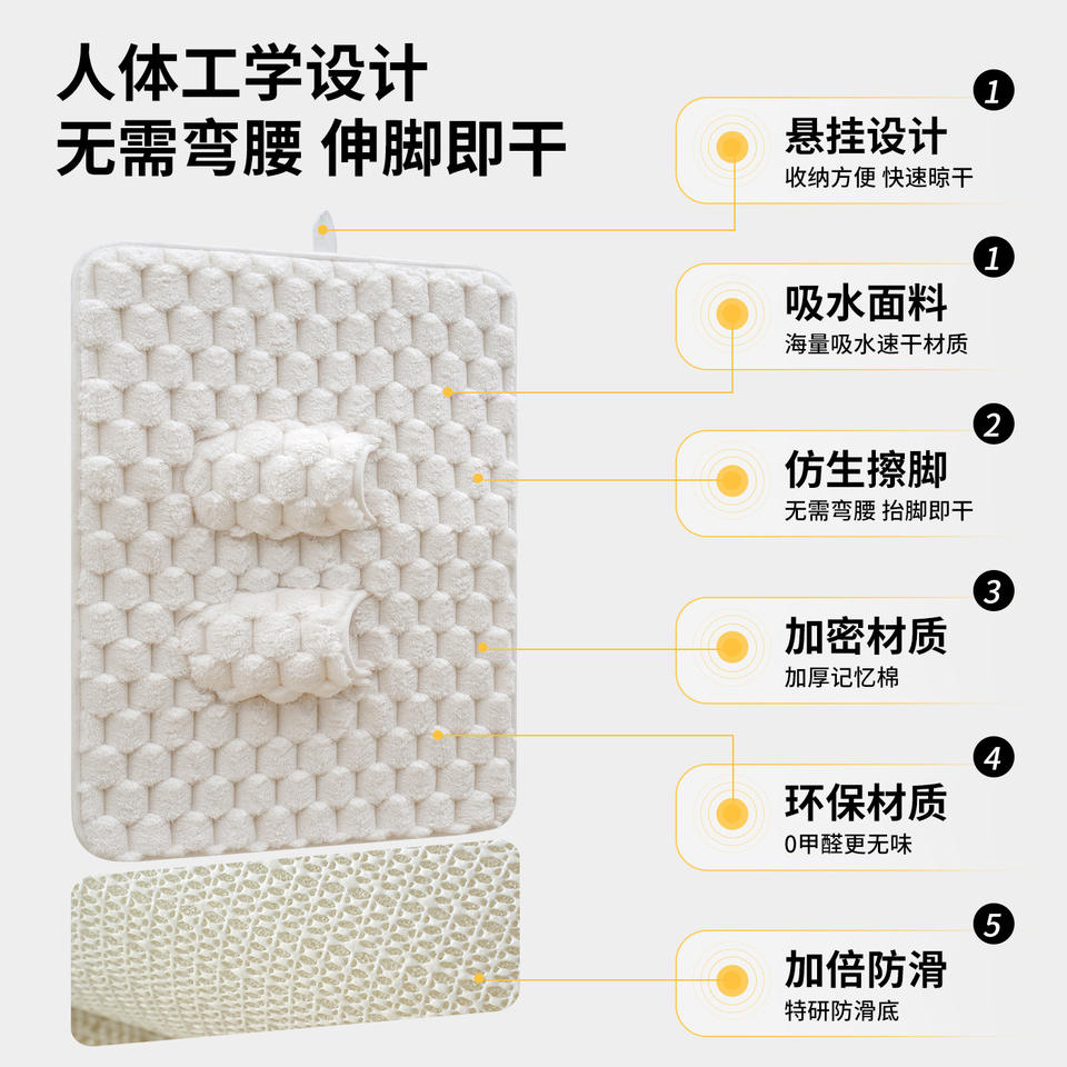 Thickened Bathroom Mat Rectangle Absorbent Non-Slip Quick-Drying Foot Mat Polyester Fiber Minimalist Design