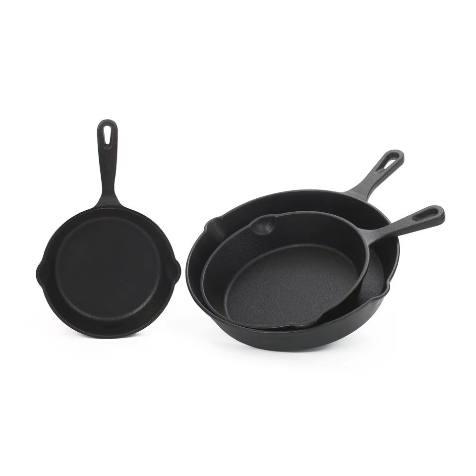 ชุดกระทะเหล็กหล่อแบบหนา ทันสมัย เป็นมิตรกับสิ่งแวดล้อม 3 ใบ ขนาดเล็ก เคลือบสารกันติด ใช้ได้กับเตาแก๊สและเตาแม่เหล็กไฟฟ้า