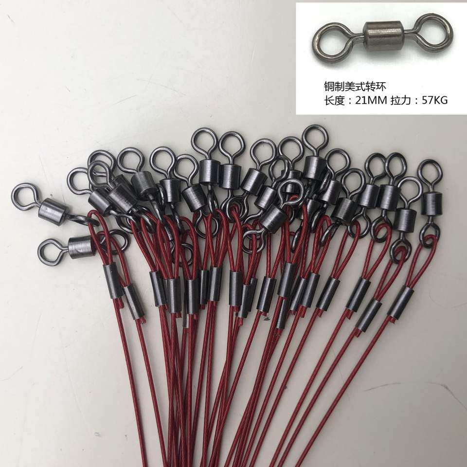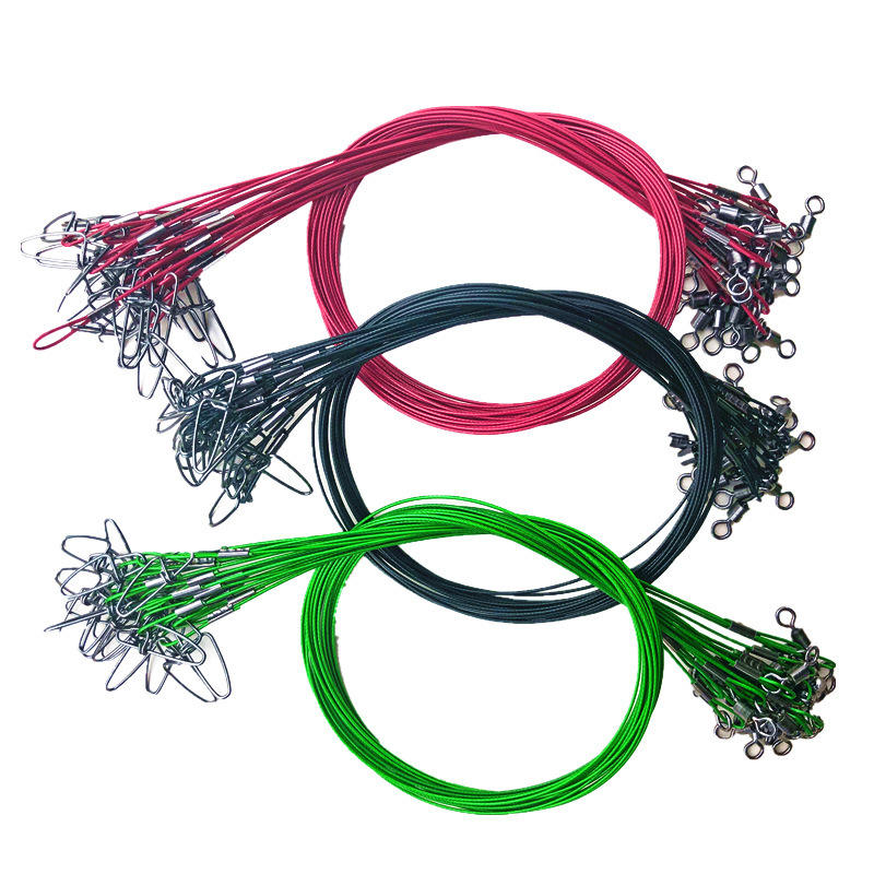 สายลวดเหล็กทองแดงหนาสำหรับตกปลาทะเล พร้อมห่วงสแนปสีเขียว ดำ แดง ขนาด 20 ซม. 30 ซม. 50 ซม. ทำจากเหล็กกล้าคาร์บอน