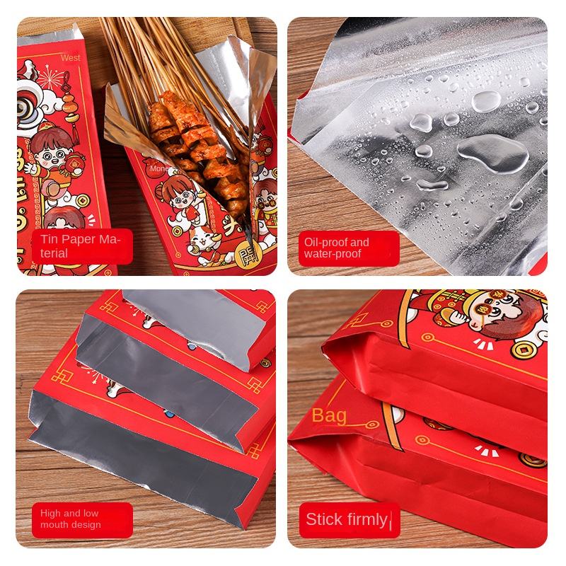 ถุงฟอยล์อลูมิเนียมแบบหนาสำหรับใส่อาหารปิ้งย่างและของว่าง (ปรับแต่งได้) - แพ็ค 100 ใบ