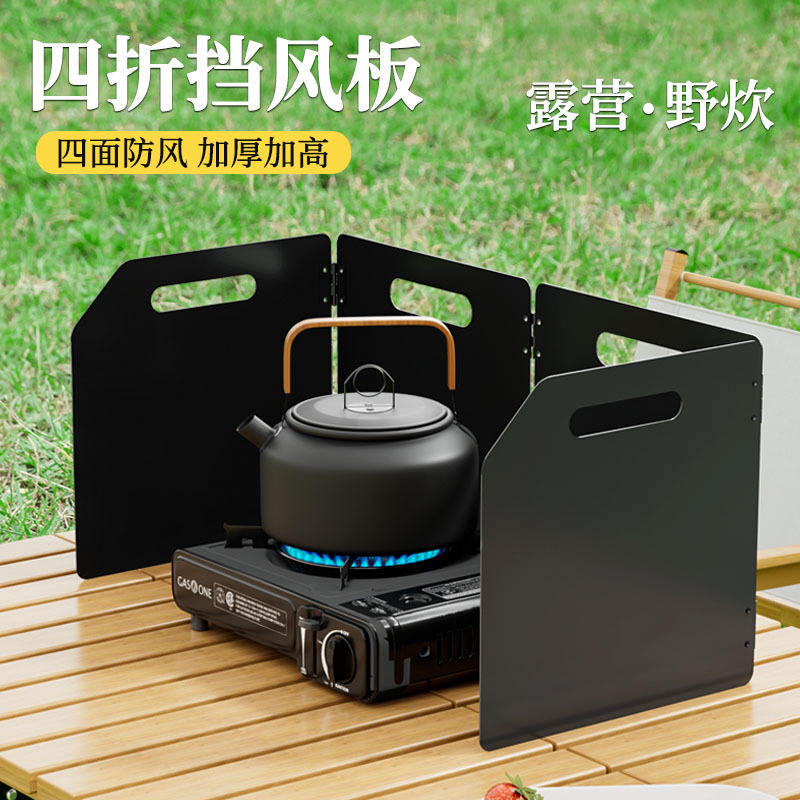 แผ่นบังลมแบบพับได้สำหรับเตาแก๊สกลางแจ้ง ฝาครอบกันลมแบบพับได้แบบพกพาพร้อมที่จับ ใช้ได้ทุกฤดูกาล