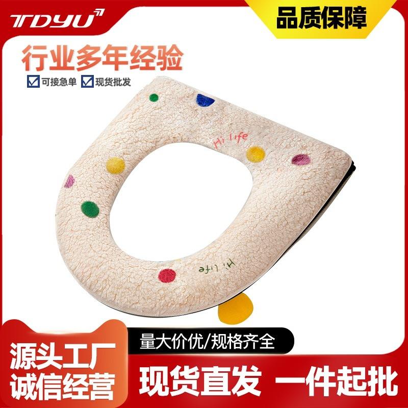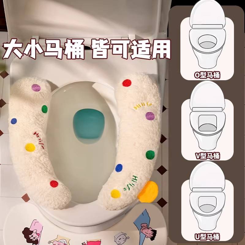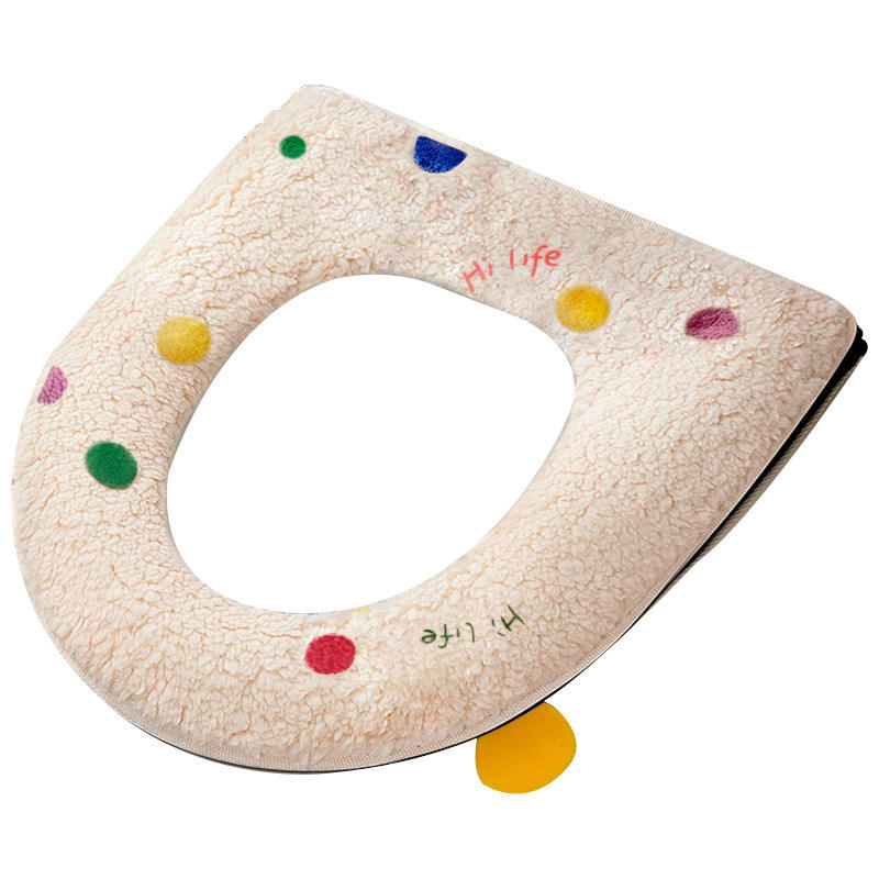 ฝาครอบที่นั่งชักโครกขนแกะหนานุ่ม กันน้ำ อุ่นสบายในฤดูหนาว พร้อมดีไซน์ลายจุดสีสันสดใส สำหรับใช้ในห้องน้ำที่บ้าน