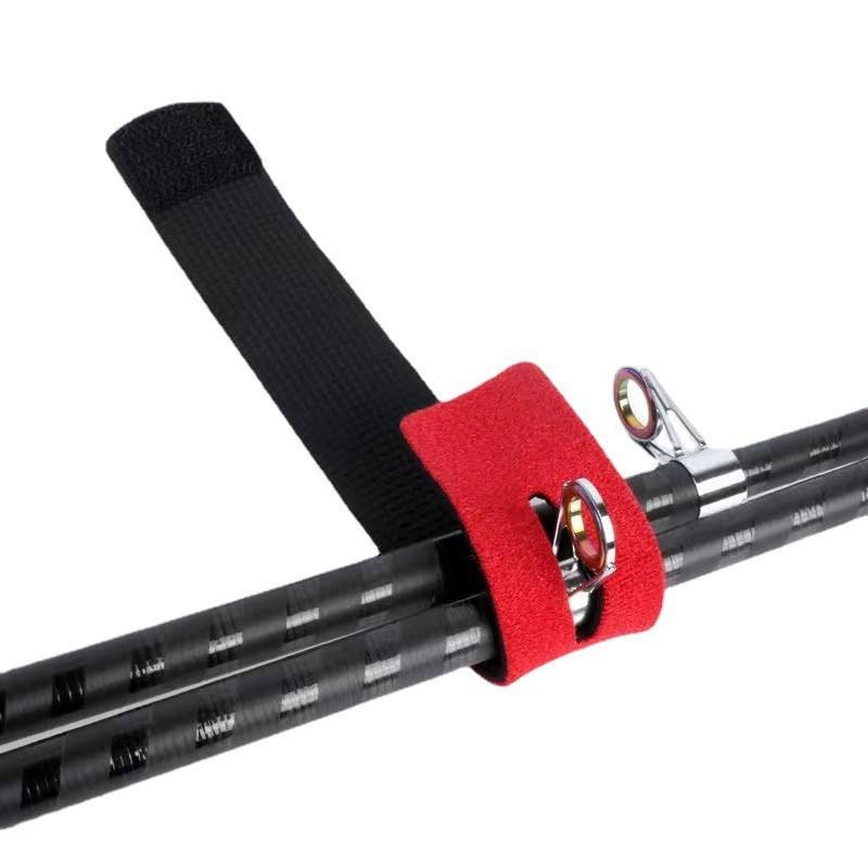สายรัดคันเบ็ดแบบหนาพิเศษ สายรัดมหัศจรรย์ ยืดหยุ่นได้ สำหรับยึดคันเบ็ด สีดำ แดง น้ำเงิน วัสดุผ้าโอเค