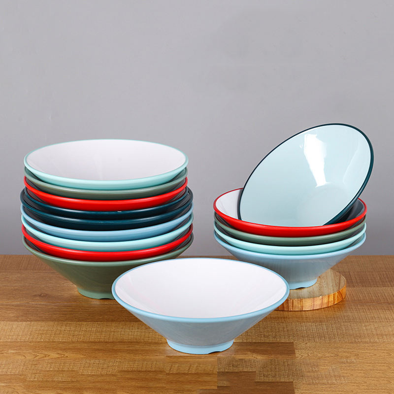 ชามเมลามีนหนาสำหรับราเม็งเนื้อ ชามสลัดผลไม้ ไม่แตกง่าย ชามบะหมี่ ชุดอาหาร งานฝีมือเรซิ่น