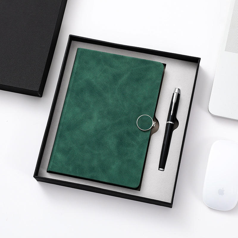 สมุดโน้ตและปากกาแบบหนาชุดสองชิ้นของขวัญทางธุรกิจสมุดงานสำนักงานสมุดโน้ตสีเขียวเข้มระดับไฮเอนด์พร้อมหัวเข็มขัด