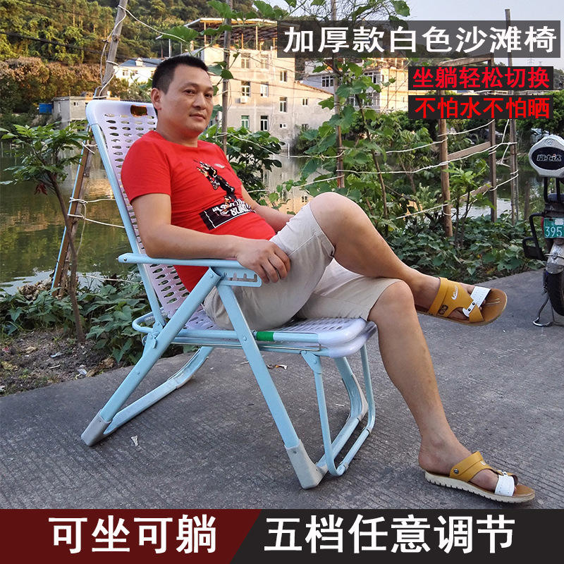 เก้าอี้ชายหาดพลาสติกพับได้แบบหนา ขนาดมาตรฐาน ปรับเอนได้ ดีไซน์มินิมอล สำหรับชายหาด บ้าน สำนักงาน ระเบียง