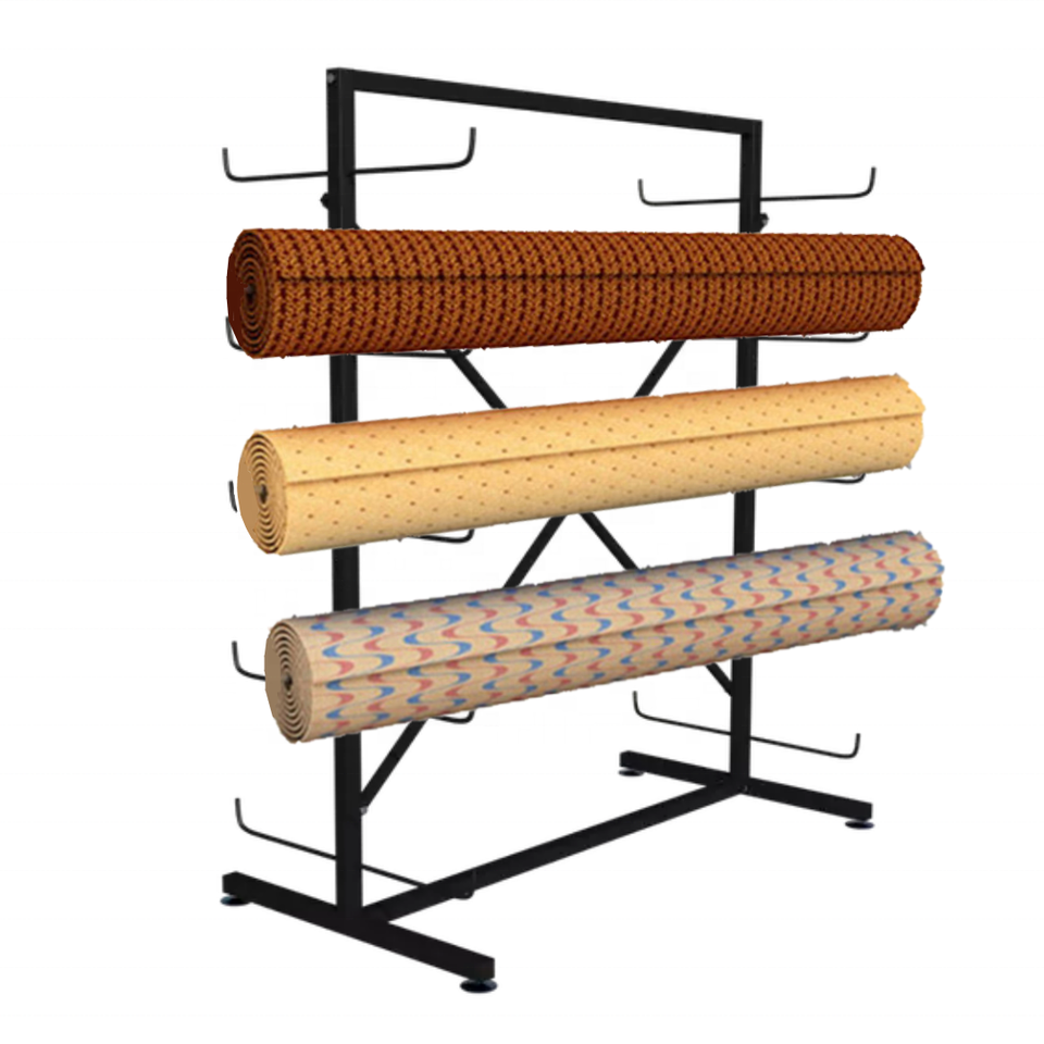 ที่แขวนผ้าหนา5ชั้นสำหรับโชว์รูมแบบสองด้านพรมผ้าสิ่งทอพรมโยคะเสื่อตั้งโชว์โลหะ
