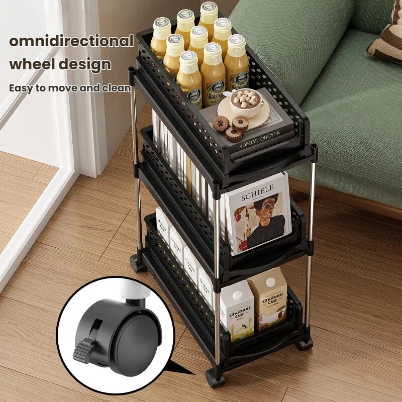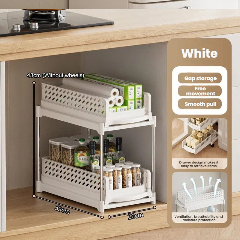 ชั้นวางของแบบเลื่อนได้ ประหยัดพื้นที่ หนาขึ้น แบบพับได้ หลายชั้น บางเฉียบ สำหรับจัดเก็บในครัว ช่องว่างใต้ซิงค์ พร้อมล้อเลื่อน