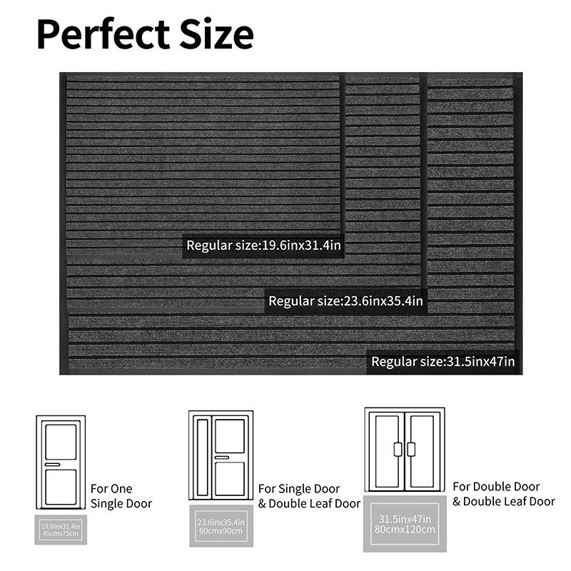 พรมเช็ดเท้าลายทางหนาสำหรับใช้งานกลางแจ้ง แผ่นรองกันลื่น PVC รูปสี่เหลี่ยมผืนผ้า