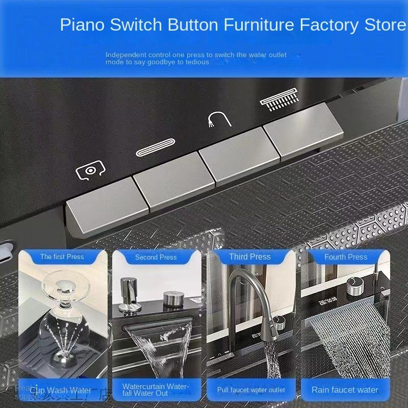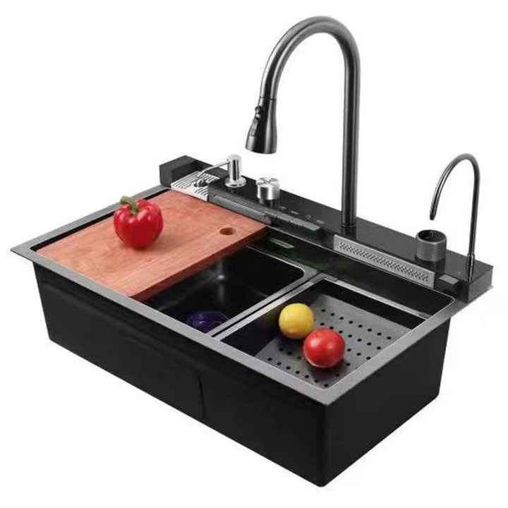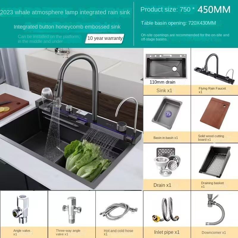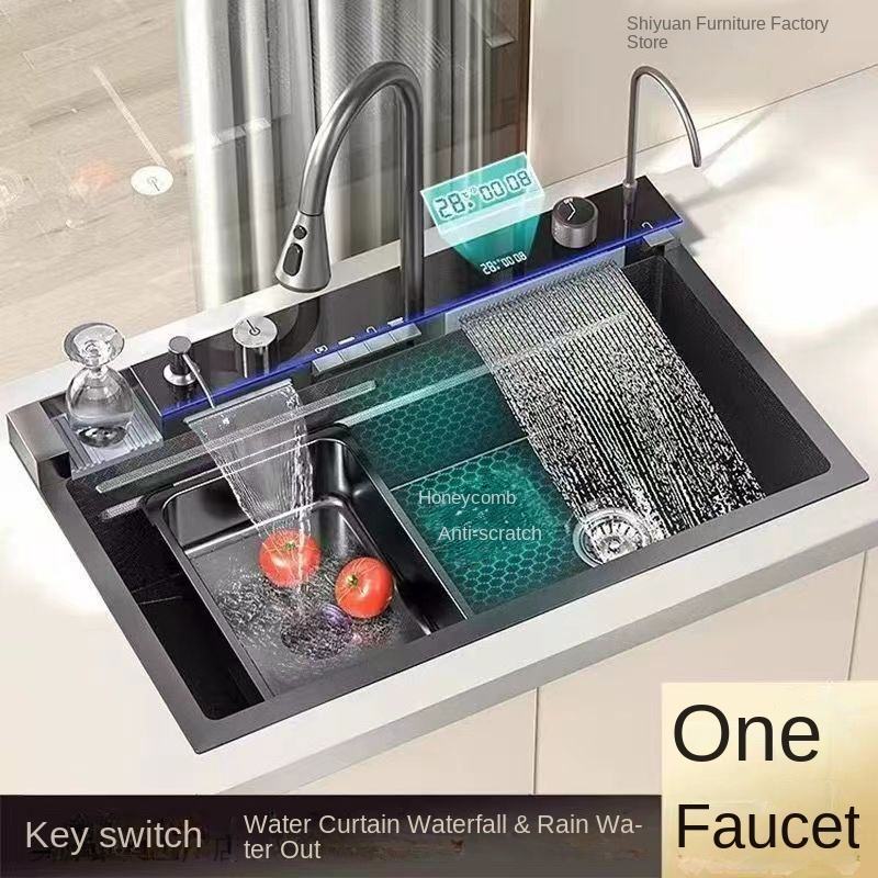 อ่างล้างผักแบบหนา 304 สแตนเลสทรงสี่เหลี่ยมลายรังผึ้ง หนา 4.0 มม. อ่างล้างจานแบบช่องเดียว น้ำตก นาโน สำหรับห้องครัว