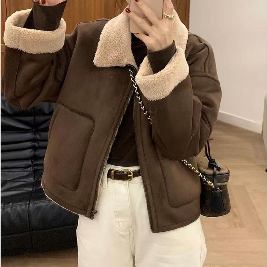 เสื้อโค้ทผ้าฝ้ายผู้หญิงแบบหนาบุขนแกะมีปกแฟชั่น