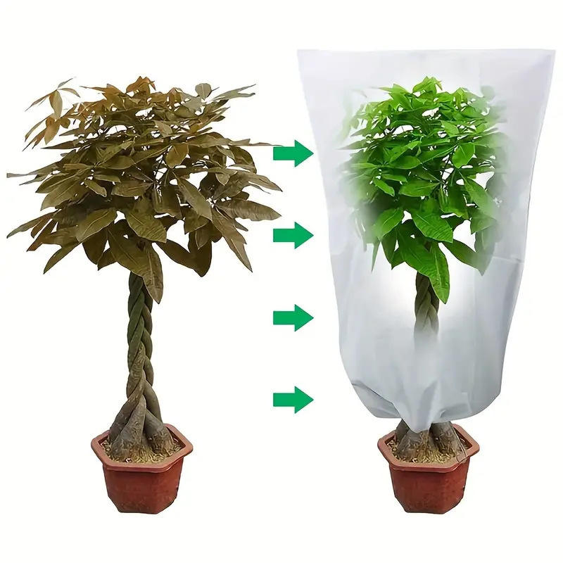 ผ้าคลุมต้นไม้กันน้ำค้างแข็งแบบหนาสำหรับฤดูหนาว พร้อมเชือกผูกปิด ป้องกันความหนาวเย็น สำหรับสวนกลางแจ้ง ป้องกันแมลง สำหรับต้นไม้และพืชสีเขียว