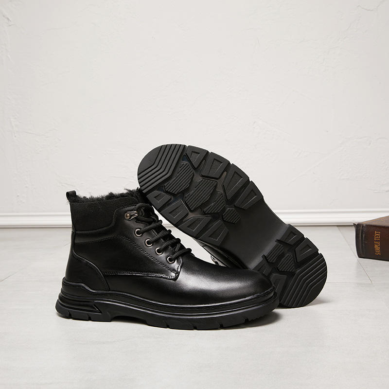 รองเท้าบูทผู้ชายขนหนา - รุ่นใหม่ประจำฤดูหนาวปี 2025 แบบผูกเชือก พื้นหนา รองเท้าผ้าฝ้ายบุขนสำหรับผู้ชาย สวมใส่สบายและอบอุ่น วางจำหน่ายแล้ว