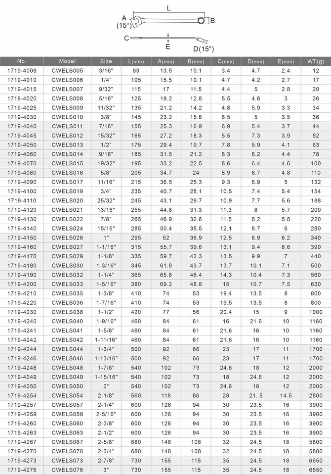ประแจรวมขนาดหัวบางเหมาะสำหรับอุปกรณ์ที่มีความแม่นยำ
