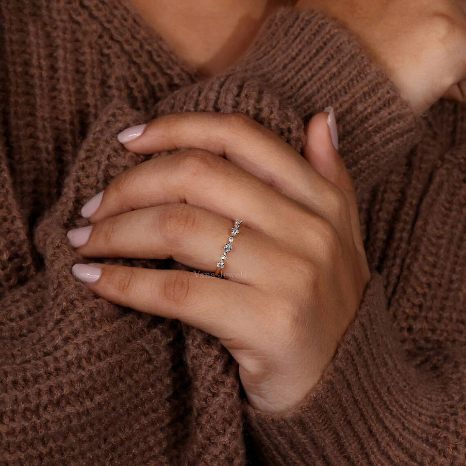 Lab Created Half Eternity Diamond Ring for Women Unique Thin Band Jewelry Perfect Wedding or Engagement Gift