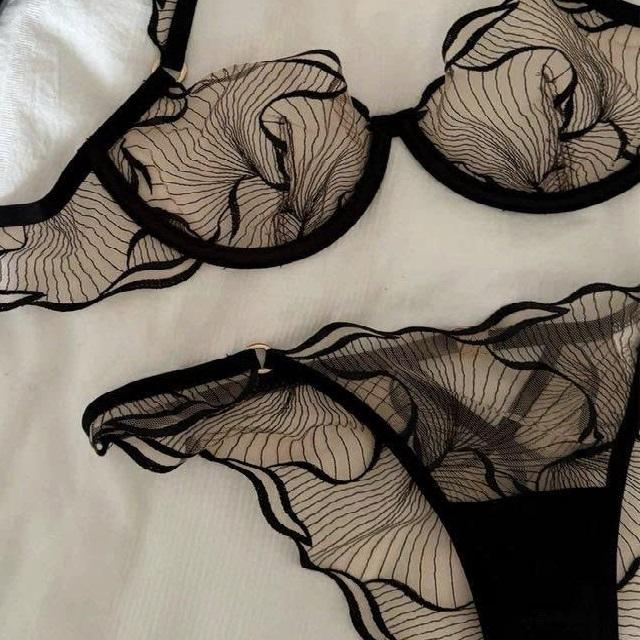 ชุดชั้นในบราลูกไม้บาง ชุดชั้นในจีสตริง ชุดบราและกางเกงในลูกไม้โปร่งใส