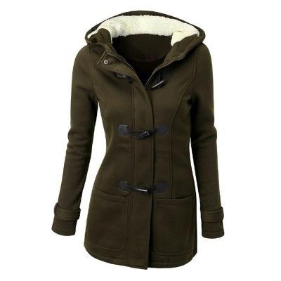 เสื้อแจ็คเก็ตและโค้ทผู้หญิงแฟชั่น ดีไซน์ใหม่ สไตล์บางเบา สำหรับฤดูใบไม้ผลิ มีฮู้ด กระดุมเขาสัตว์ และกระเป๋า ไซส์พลัส