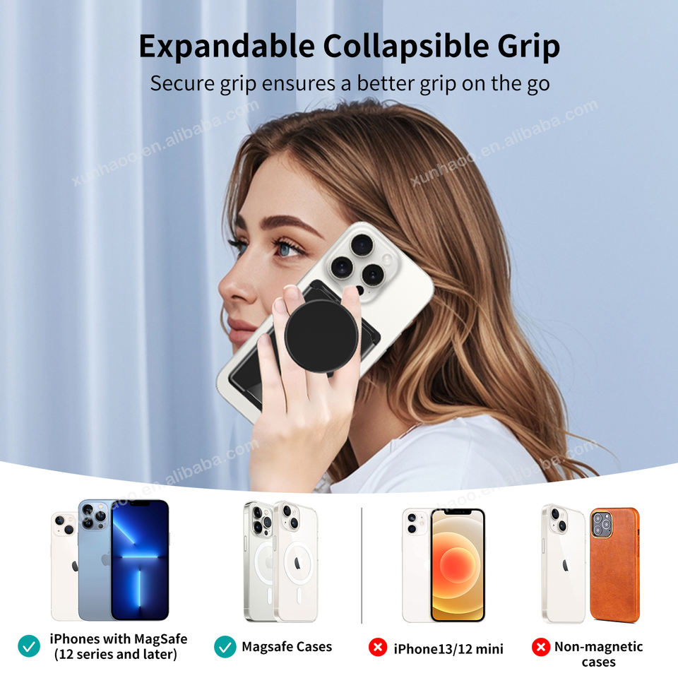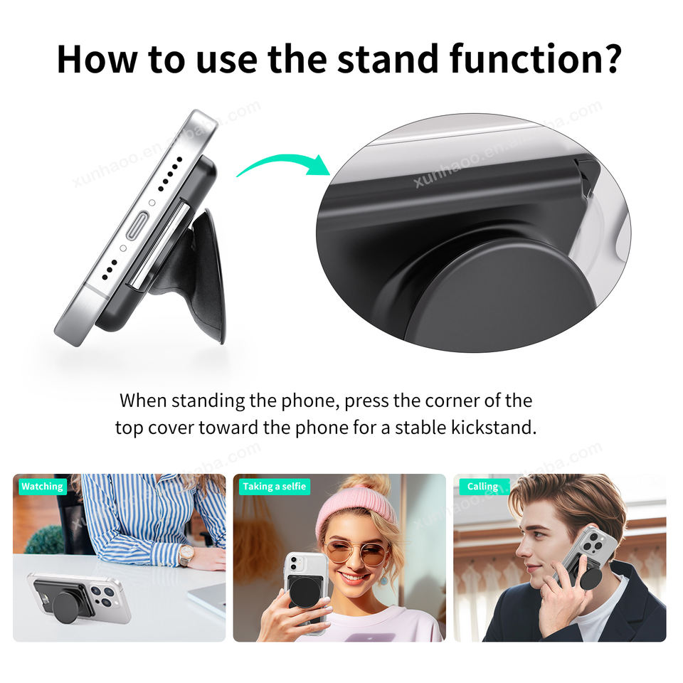 กระเป๋าสตางค์บางสำหรับผู้หญิง พร้อมที่ใส่บัตรเครดิตแบบแม่เหล็ก ดีไซน์แบบ Pop-up พร้อมที่จับนิ้วมือ และขาตั้งปรับได้ สำหรับ iPhone