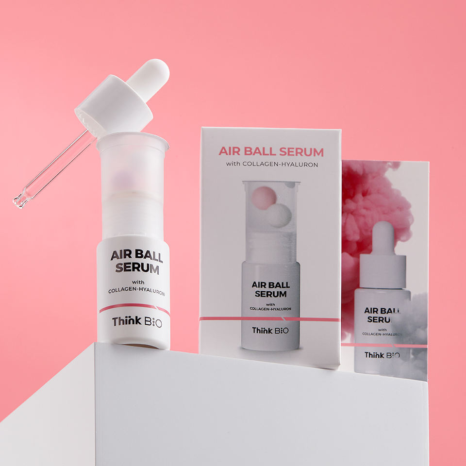 เซรั่ม Think Bio AIRBALL ผสมคอลลาเจนและไฮยาลูรอนิค แอซิด ช่วยยกกระชับผิว ลดเลือนริ้วรอย ฟื้นฟูความชุ่มชื้น สำหรับผู้หญิง บรรจุภัณฑ์กล่อง