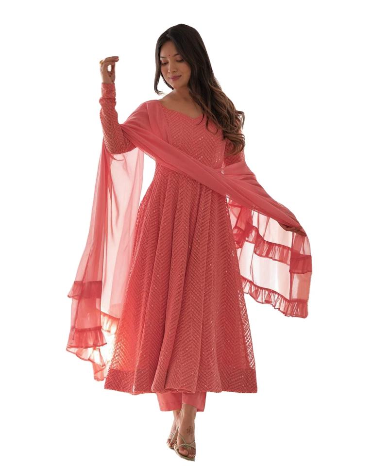 ชุดเทศกาลดิวาลีนี้ร้อนแรง & ดูน่ารักผ้าจอร์เจียเทียมเนื้อนุ่มแท้ชุด anarkali ลายไหวพริบขนาดใหญ่พร้อมชุด dupatta