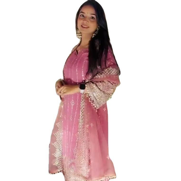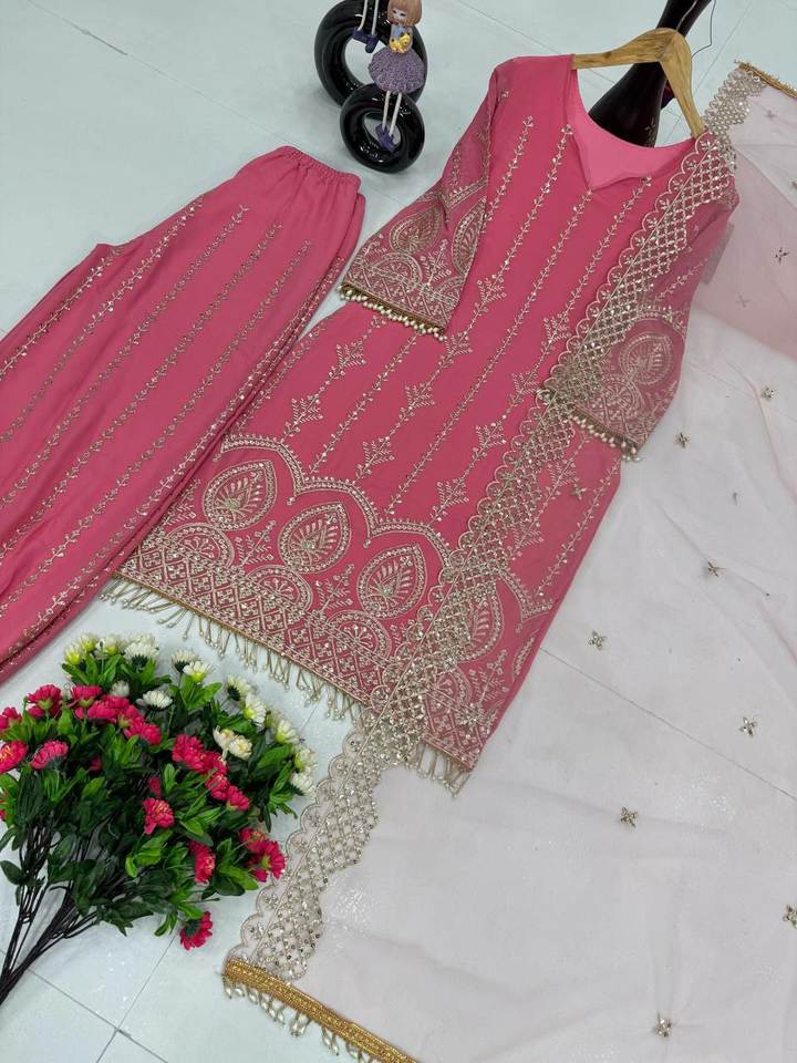 This Diwali Season Wear Most Attractive New Pattern Pink Color Faux Georgette Fabric Indian& Pakistani Clothing At Low Rate