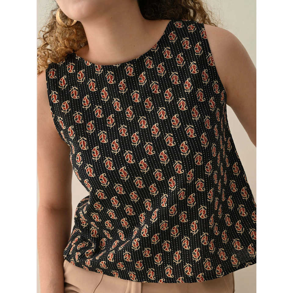 เสื้อสไตล์ชนเผ่าสีดำสำหรับฤดูร้อนสไตล์โบฮีเมียนปักลวดลายลวดลายประณีต Kantha แบบไม่ตกยุค