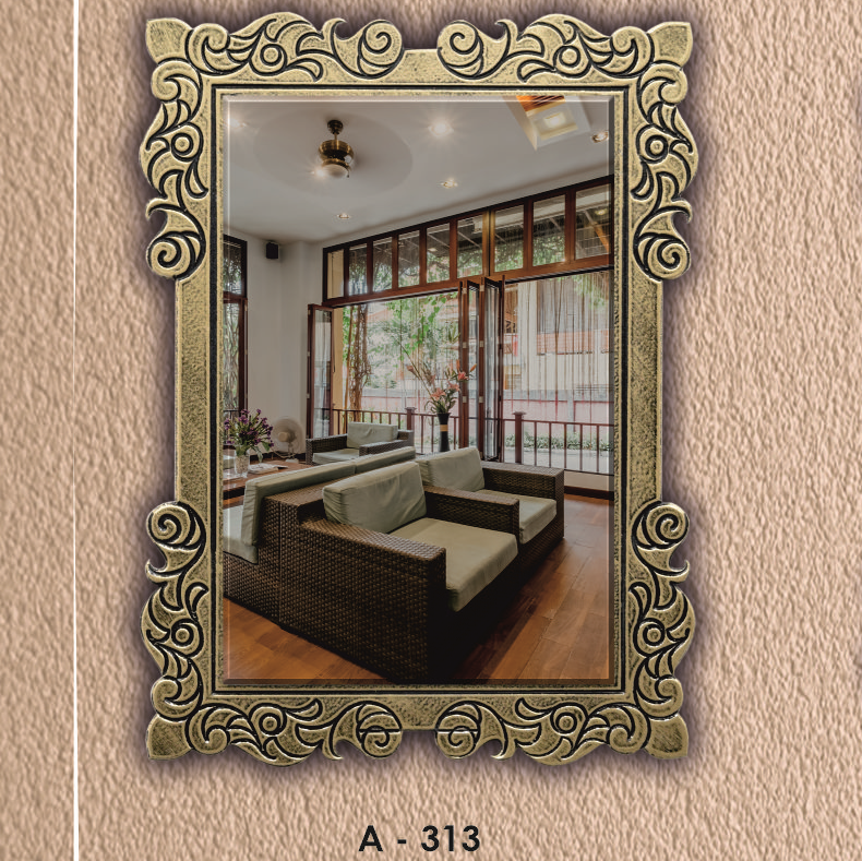 กระจกเงาอันงดงามนี้เป็นตัวอย่างของความสง่างามสไตล์วินเทจที่น่าทึ่ง มาพร้อมกรอบสีทองตกแต่งอย่างประณีต