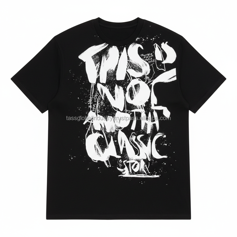This Is Not Another Classic Story Spray Paint Graphic Black Shirt Oversized Heavyweight Custom Logo OEM