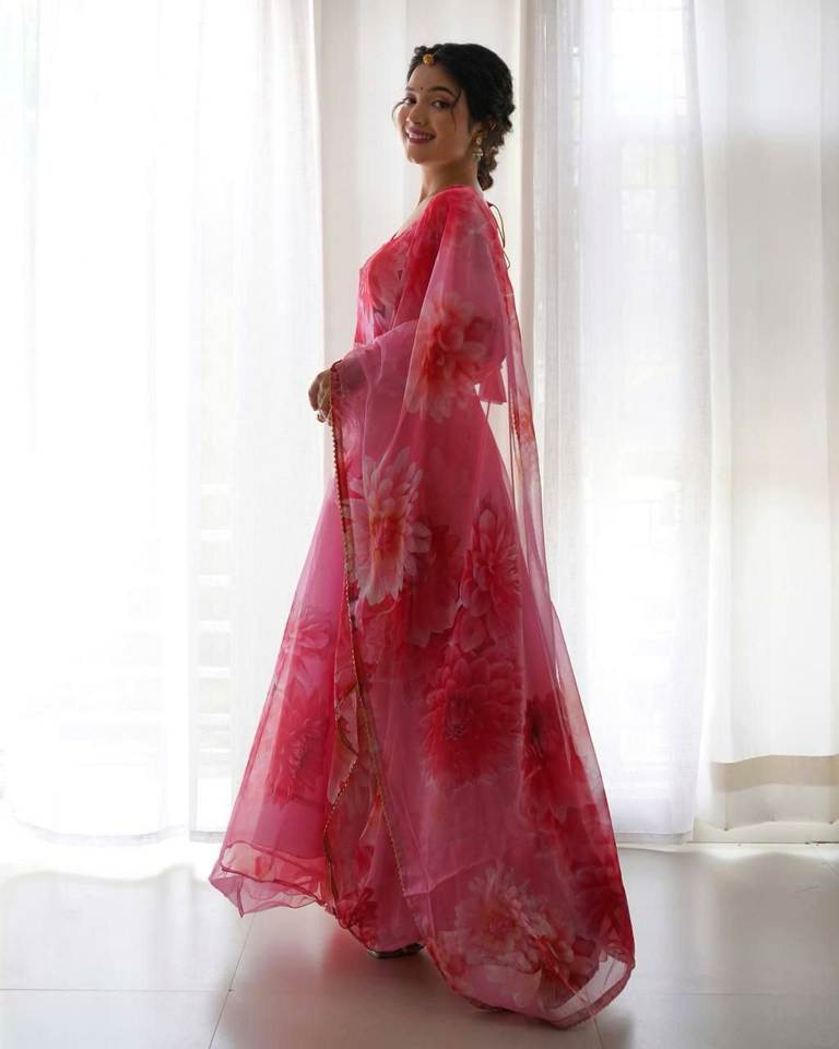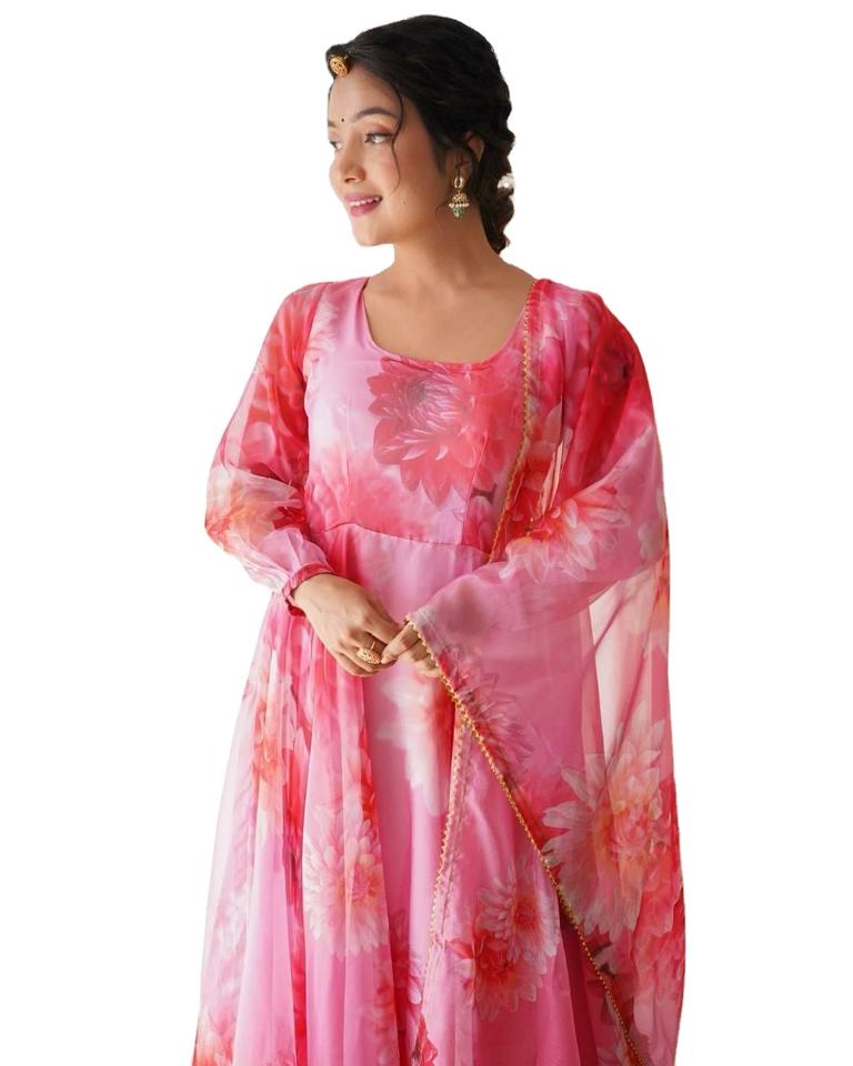 This Summer Season Wear Light Weight Heavy Organza Tabby Silk Fabric 3/4 Sleeve Pattern Full Stitch Anarkali Kurta & Dupatta Set