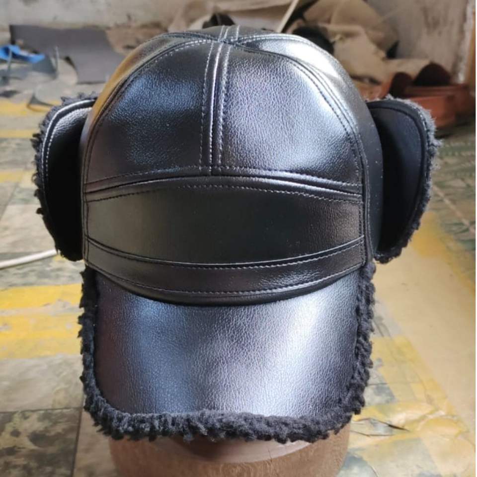 นี่คือหมวกเบสบอลหนังสีดำสำหรับฤดูหนาว มีที่ปิดหูและบุผ้าฟลีซ