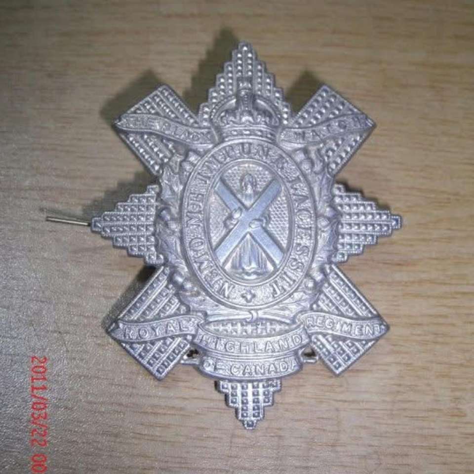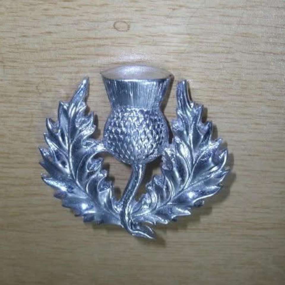 นี่คือตราสัญลักษณ์หมวกทรงเร็กแบบโลหะสีขาวของควีนส์ ออว์น แคมรอน ไฮแลนเดอร์ส (ลิเวอร์พูล สกอตแลนด์)